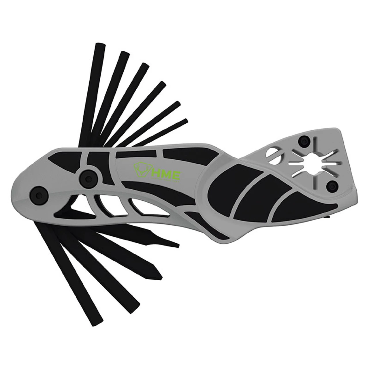 Archery tool, wrench and broadhead sharpener combo. Specifically designed for bows and arrows.