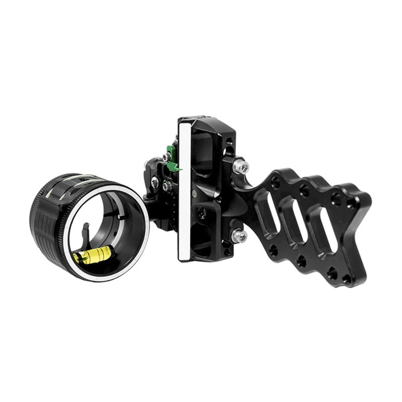 High quality remains consistent to AXCEL’s toughest standards. A sleek and solid mounting bracket and elevation bar make the AccuHunter a dependable choice among the hardest of hunters. An adjustable 20 yard dead stop helps you dial back to 20, 30, 40 yards in a second, while the 45 degree rear facing sight tape helps you keep your bow arm extended during adjustments for minimal movement in a tree stand! True first, second, and third axis adjustments are similar to AXCEL’s top quality tournament sights. Superior features include a push-button windage lock that ensures nothing will be able to adjust your sight knob without you knowing. It’s tough green accents include the elevation lock lever, the pointer, and the windage lock. AccuHunter sights can be transformed into right or left hand dexterity with no additional parts.