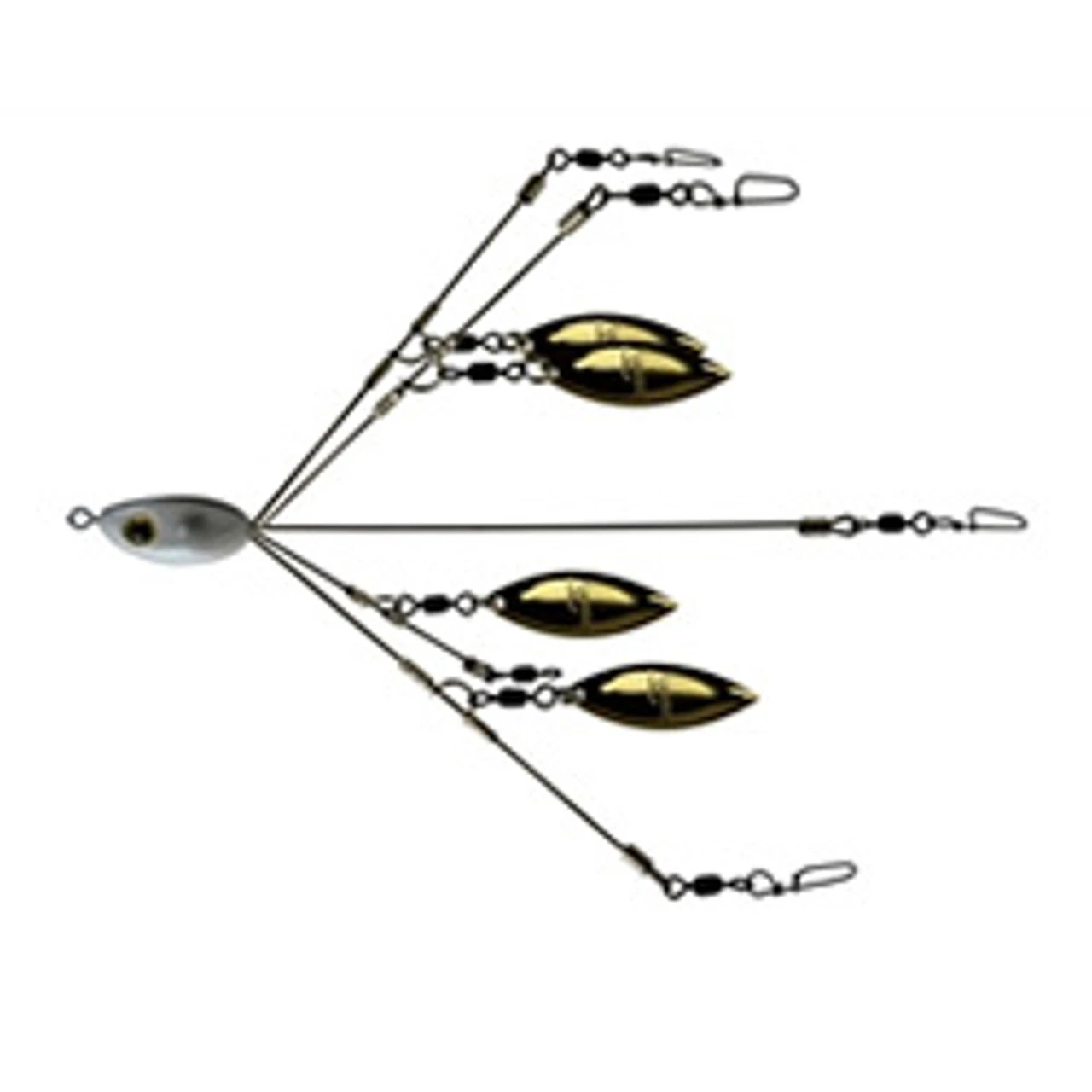 The lightweight high-impact resistant plastic head and embedded nose swivel prevents line twist and also prevents the fish from leveraging itself off when hooked. The blades are perfectly sized to provide flash and vibration to attract the fish while still allowing the rig to stay down in the strike zone without getting lift. No longer does a broken swivel render your Umbrella Rig useless and destined for the trash along with your hard earned money.