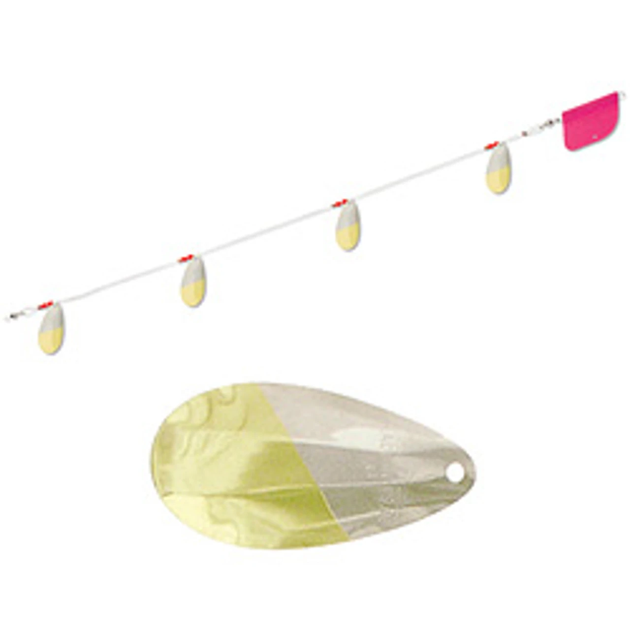 The Cowbell is Luhr Jensen’s most popular lake troll and perhaps the most productive troll in the world. Its unique blade design produces an awesome fish-calling vibration while Luhr-Jensen’s premium plating and polishing of the blades offer maximum flash. You’ll draw fish from greater distance, and produce more strikes with Cowbell trolls in your spread. Cowbell trolls come completely rigged with flexible cable rigging, trolling rudder and a selection of blade sizes and troll length. With multiple sizes and a host of proven finishes, you’ll be sure to maximize success on your local waters.