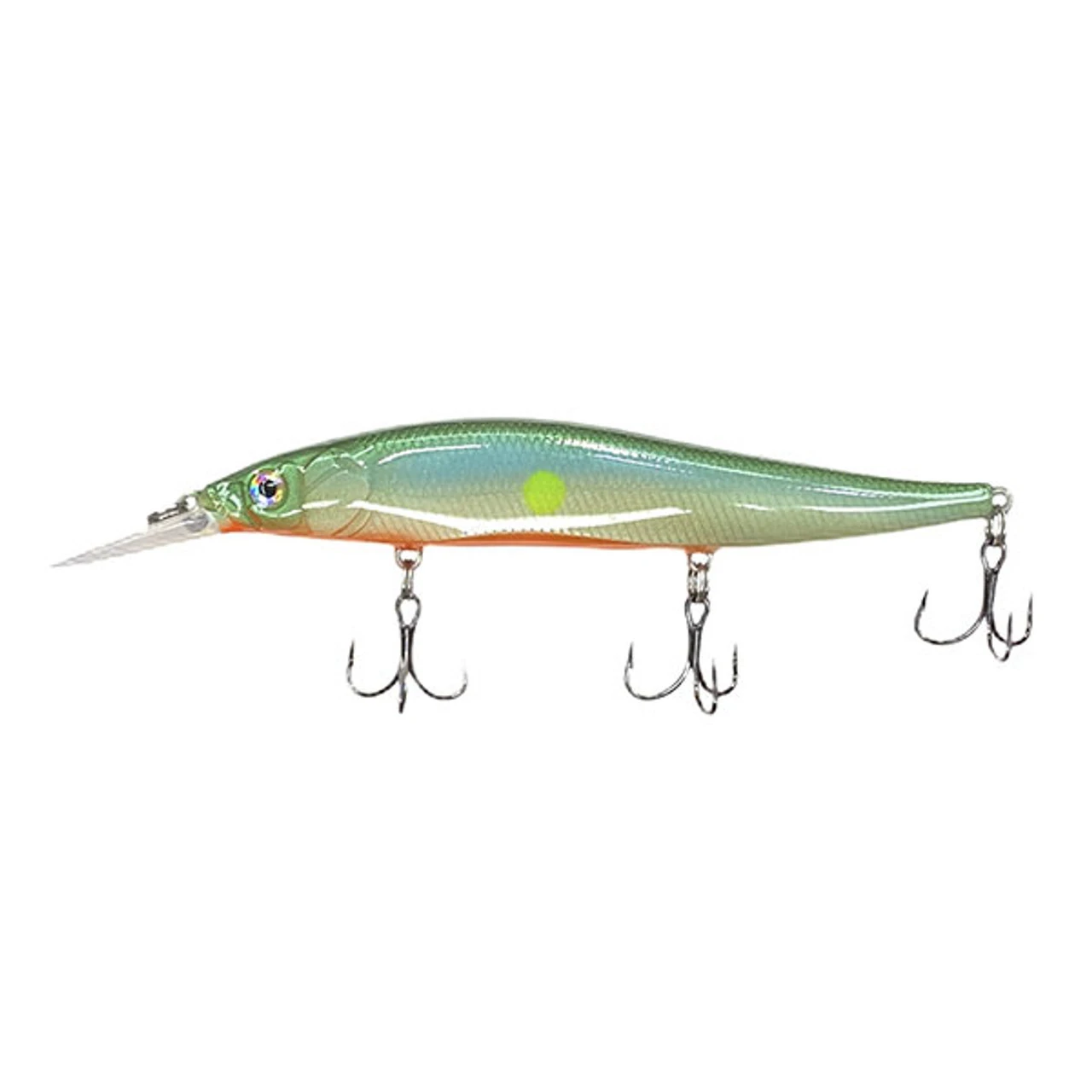 Our jerkbaits currently come in three styles – the Suspending 110, the Slow Rise 110, and the Deep Diving 110+1. The Suspending 110 and the Slow Rise 110 will dive 3-6 feet, while the Deep Diving 110+1 will reach depths of 5-8 feet. For excellent castability, you’ll find the same weight transfer system as are in some others you may have tried from the big guys in the business. They all come with #6 Mustad KVD Triple Grip hooks to help you get the highest hook-up percentage possible.