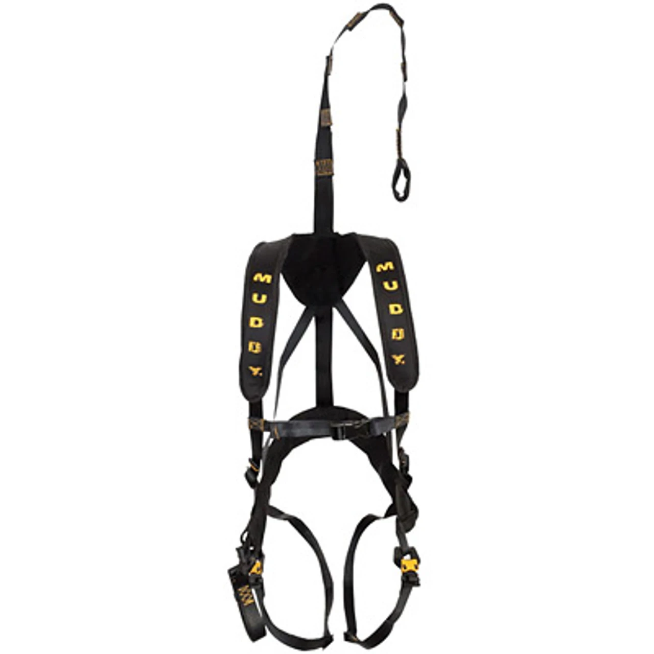 Muddy Treestand’s The Magnum Elite safety harness is an EZ-ON fully adjustable design that will fit most hunters, with a weight rating of up to 300 lbs.